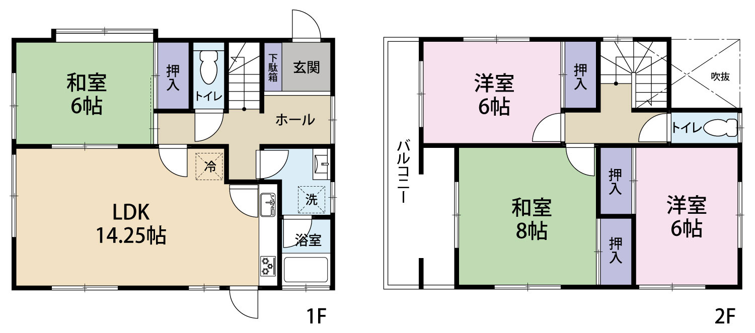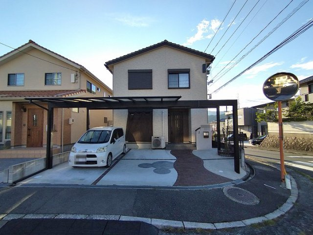 H14年完成、ダイワハウス施工の軽量鉄骨4LDK注文住宅。 駐車3台可能で、玄関上部は吹抜けとなっており開放的な空間を演出します。 庭付きで陽当たりも良好です。