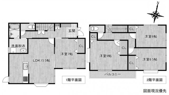 1995年完成のリノベーション向き4LDK。駐車3台可能です。前面道路は6.3mと広く、駐車しやすい環境。廊下から洗面脱衣所を経由してLDKへつながる、回遊性の高い間取りです。