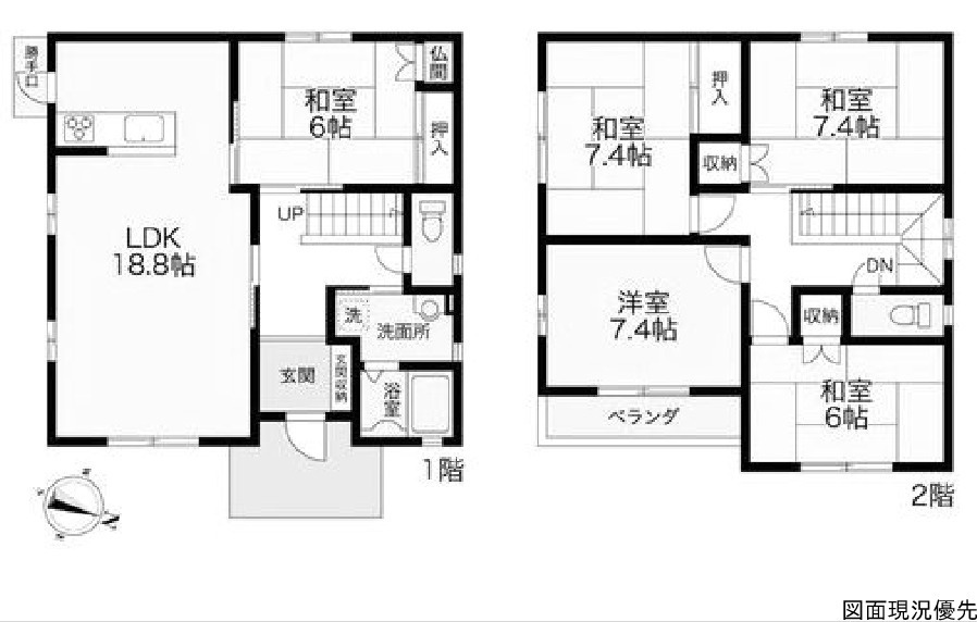 S44年完成の5DK+S、リノベーション向け物件です。 駐車は堀込車庫に1台可能。和室が多く、昭和の趣を感じられる和風住宅です。 令和の時代に合わせたリノベーションを施すか、昭和のノスタルジーを生かすかは、あなた次第です。