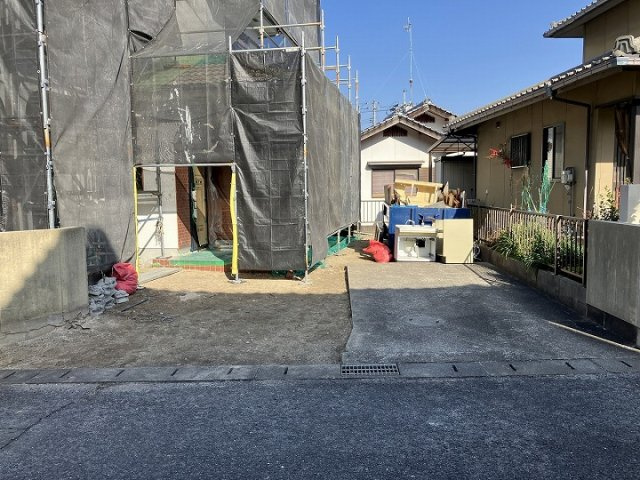 2025年8月内外装リフォーム 4DK戸建。 両面道路に面した角地で、開放感のある立地です。駐車スペースは2台分確保されています。