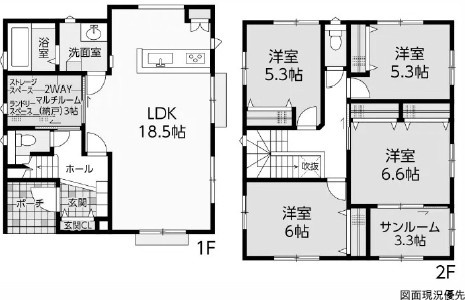 ルルーディア福田1丁目!間取りは人気の3LDK!地球にやさしいオール電化!SIC・WIC等収納面も充実!サンルームも魅力的!詳しくはお気軽にお問い合わせください!