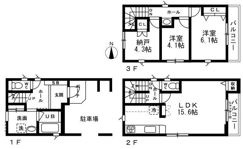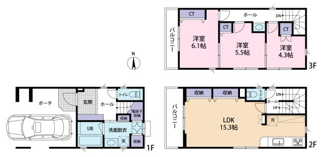 大河小学校のすぐ近くです。日当たりの良い南向きの3階建てで雨に日も安心のビルトインガレージです♪2階に対面キッチンの16LDKと水回りがあり人目も気にならず快適ですね!
