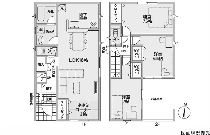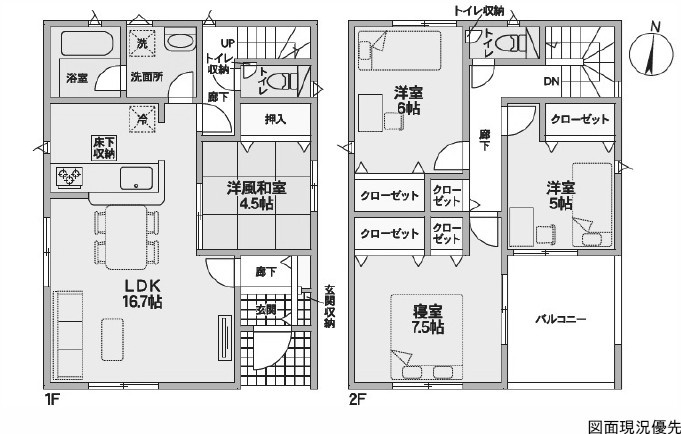 向洋ニュータウン洋光台にある新築住宅!耐震等級3+省エネ性能ラベル付!間取りは2LDK+S!各居室CL等収納面充実!駐車場は並列2台分有!団地内に商業施設や向洋新町小学校も有り利便性もGOOD!