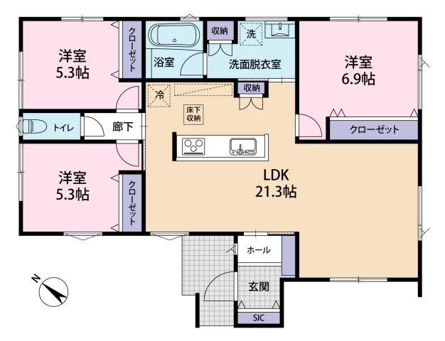 ハニージュみつぎ団地内にある新築住宅!今話題の平屋!トータテハウジング施工の家!人気の3LDK!広~い21.3帖のLDKが魅力!オール電化!SIC等収納面も充実!詳しくはお気軽にお問い合わせください!