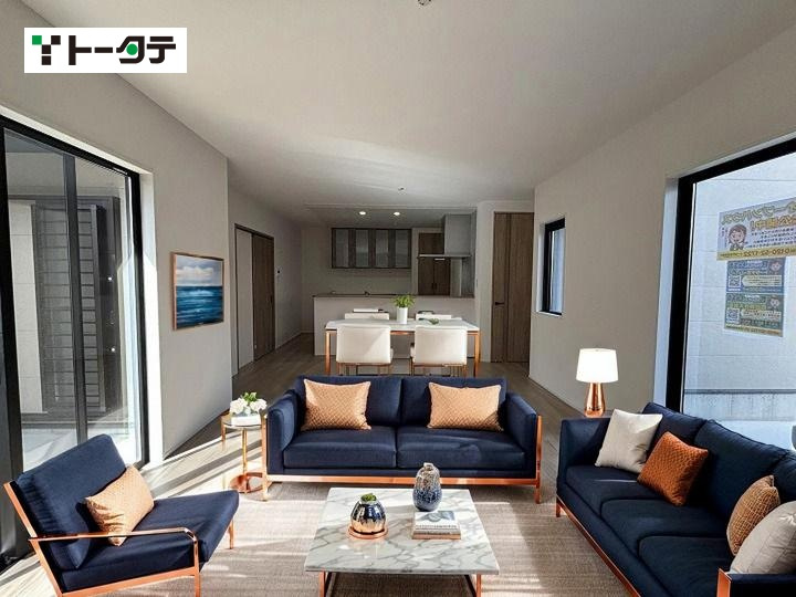 開放的でおしゃれなオープンキッチンを採用した4LDK。ゆとりある玄関・ホールに、ワイドタイプのバルコニーを備え、南向きで陽当たり良好です。火災に強く保険料を抑えられる省令準耐火構造。駐車2台可能。