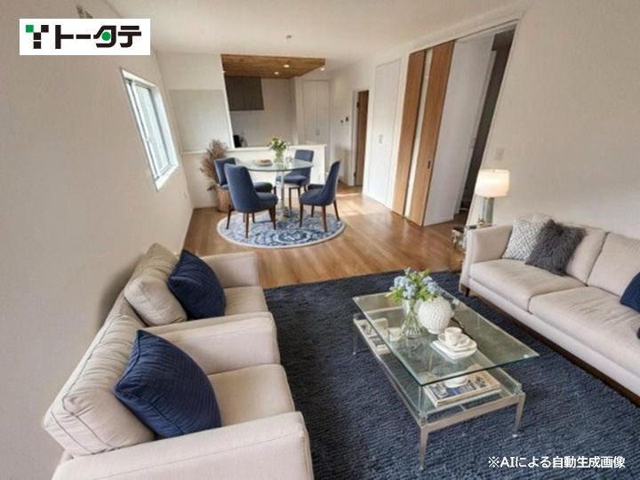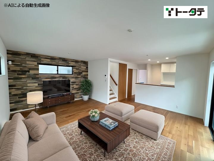 リビングには壁一面にエコカラットを採用し、デザイン性の高いおしゃれな空間を演出するとともに、除湿・消臭効果も期待できます。 ゆとりのある洗面脱衣室にはガス乾燥機「乾太くん」を設置しており、家事の時短に加え、子育てや共働き世帯をしっかりサポートします。 間取りは4LDKですが、2階の5.29帖は引き戸で仕切られており、家族構成やライフスタイルに合わせて大部屋としても1部屋としてもご利用いただけます。