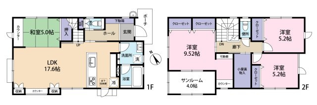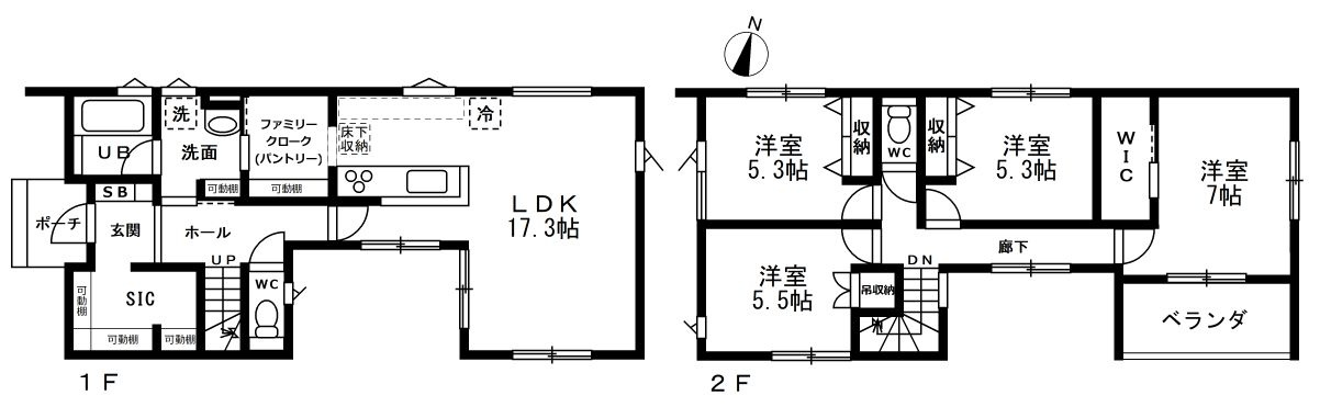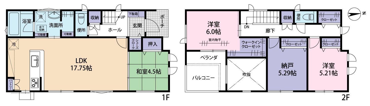 ヴェルコート五月が丘4丁目 NO.2 3LDK+Sの住宅。 リビングには吹き抜けを採用し、開放感と採光を重視した設計が魅力です。 洗面脱衣所は広くゆとりがあり、収納も充実した機能的な間取りが特徴です。