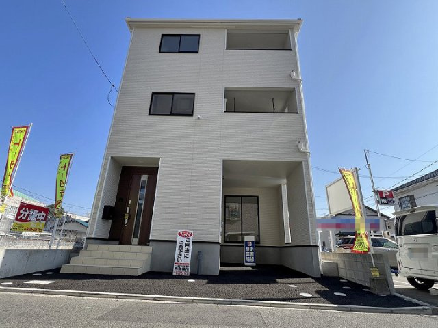 都市型3階建。敷地はゆとりの31坪で駐車3台可。 家事動線に配慮したサンルーム付きの間取設計。楽々園電停まで歩4分の好立地。 1階に洋室・水回りがあり2世帯住宅や店舗併用住宅としてもご検討いただけます