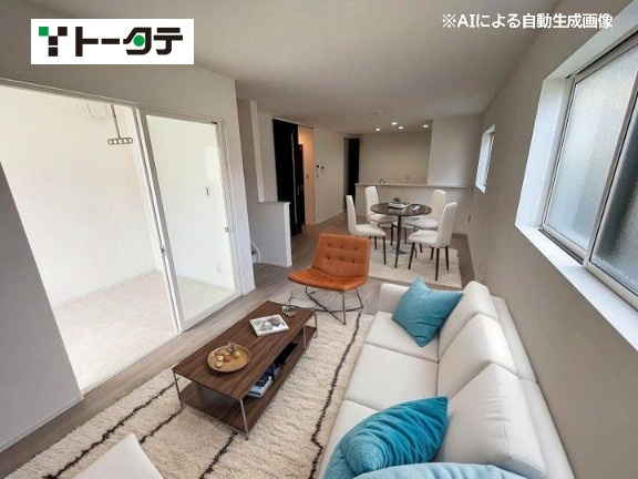 トータテの家【ヴェルコート 皆賀1丁目】全4棟販売開始となりました。 エネファームでマイホーム発電!!快適な暮らしが広がります。 4LDK 広々リビングは17.5帖に和室付き。家族だんらん 憩いの場となります。 日当・眺望良好です。開放感のあるロケーションです。