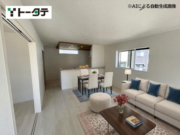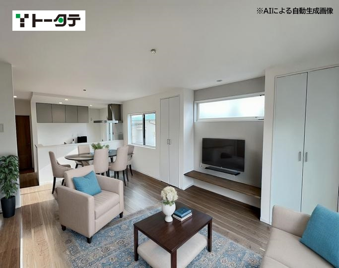 トータテの家【ヴェルコート 皆賀1丁目】全4棟販売開始となりました。 エネファームでマイホーム発電!!快適な暮らしが広がります。 4LDK 広々リビングは17.6帖に和室付き。家族だんらん 憩いの場となります。 日当・眺望良好です。開放感のあるロケーションです。