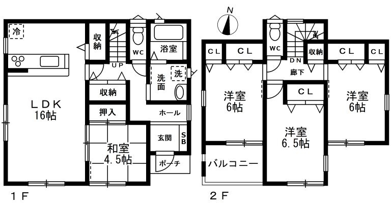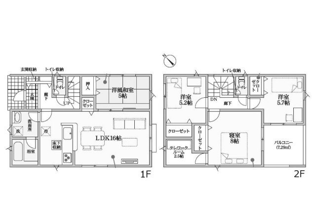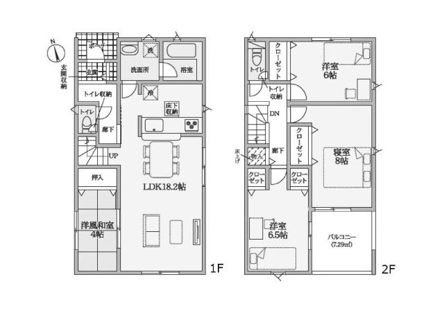 1・2階全室南側に窓があり日当たり良好です。1階廊下の収納や階段下を利用したパントリーなど収納が便利な4LDK住宅です。