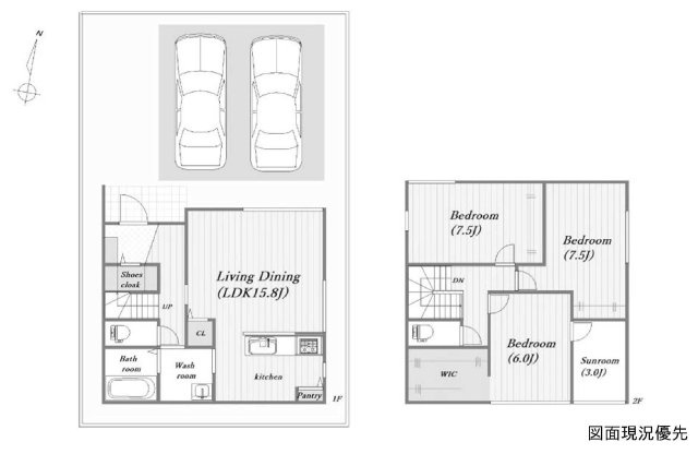住宅性能評価+長期優良住宅取得の耐震等級3(制振ダンパー付き)で安心の住まい。 前面道路7mで交通量も少なく、駐車しやすい立地です。 1階は16帖のLDKに5帖洋間、広めの洗面脱衣所とパントリーを備えた生活しやすい間取りです。