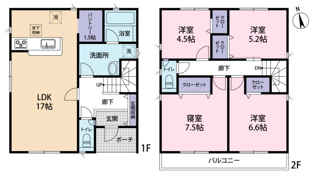 シューズインクローク、パントリー、ウォークインクローゼットなど収納豊富で暮らし易い4LDK!