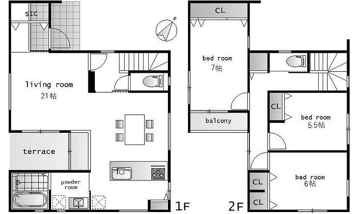 採光を考慮し中庭(テラス)を設けました!LDKは広々21帖の大空間です!