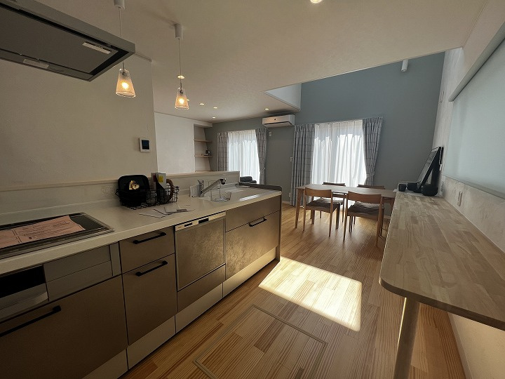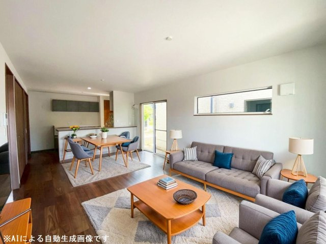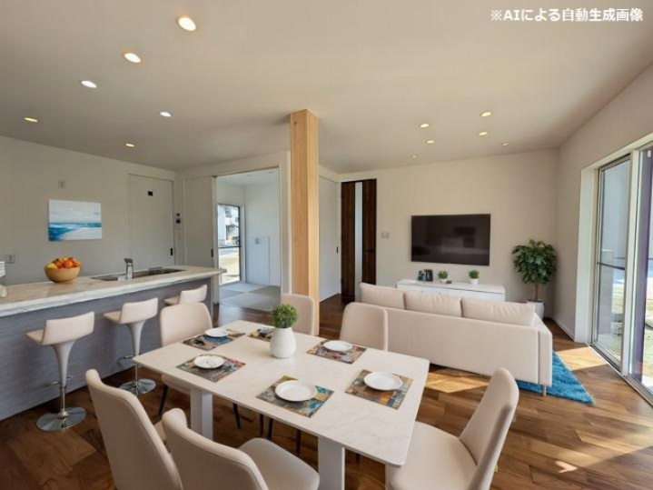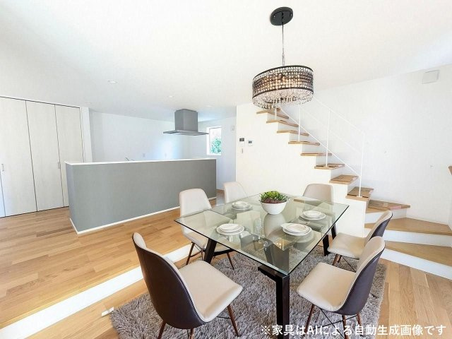 アイランドキッチンにリビング階段仕様で家族みんなが楽しく暮らせそうな間取り。ゆめモールまで徒歩8分の距離も魅力です。