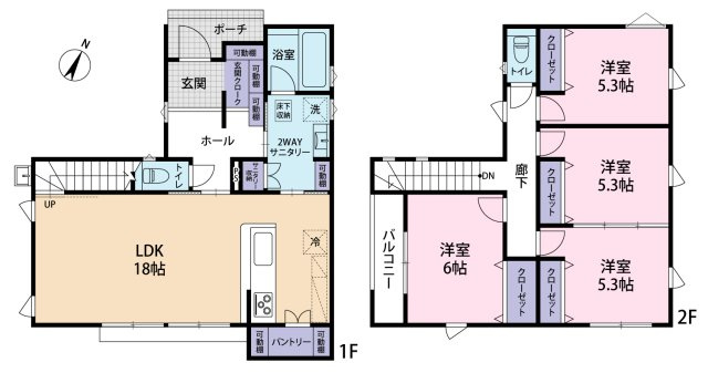 キッチンと洗面室の間にファミリークロークを設け家事動線良好な間取りとなっています!