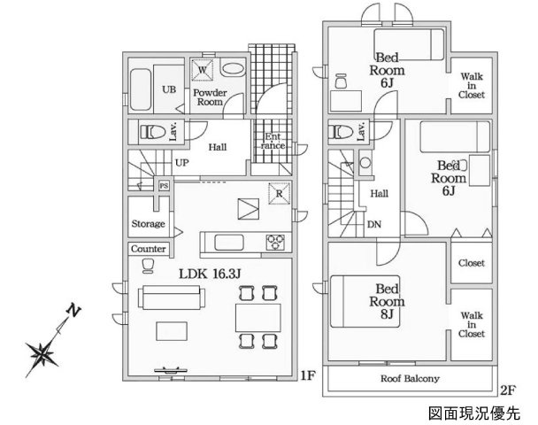 3LDK。主寝室にはWICとカウンターを設置。 長期優良住宅・住宅性能評価W取得。耐震等級3、断熱等級6を確保しています。 現在未完成ですが、モデルハウスをご用意しております。ぜひご見学ください。