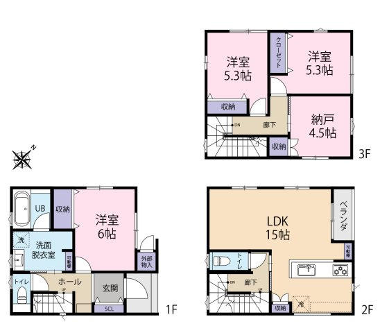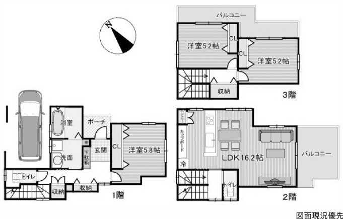 緑豊かな閑静な住宅街にある新築住宅!都心型3階建!人気の3LDK!各居室CL等収納面も充実!2面バルコニーもうれしい!ビルトインガレージ!詳しくはお気軽にお問い合わせください!