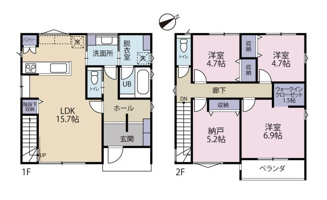全2棟!南向きで日当り良好、長期優良住宅、耐震等級3取得のオール電化住宅♪ 19LDK+ミセスコーナー、収納充実した間取です♪ 資料請求・ご見学などお気軽にお問い合わせくださいませ。