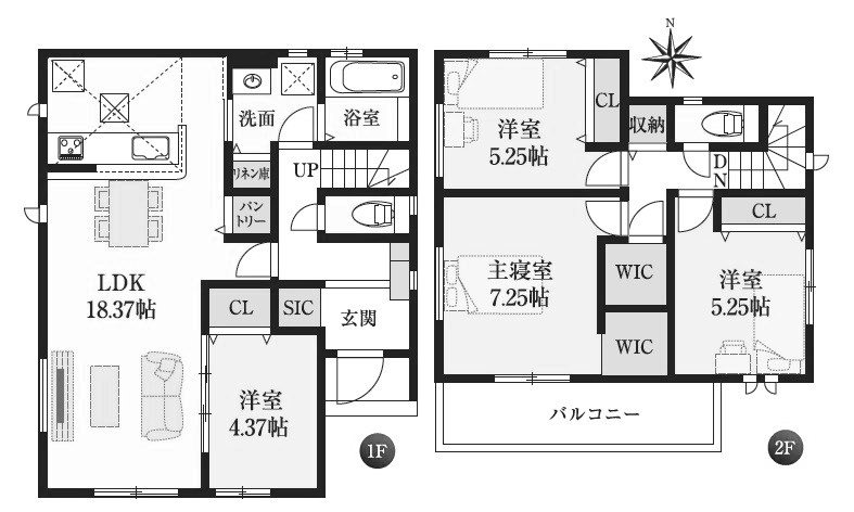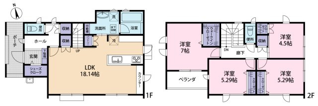 全2棟!南向きで日当り良好、長期優良住宅、耐震等級3取得のオール電化住宅♪ 18.37LDK+4.37洋室、収納充実した間取です♪ 資料請求・ご見学などお気軽にお問い合わせくださいませ。