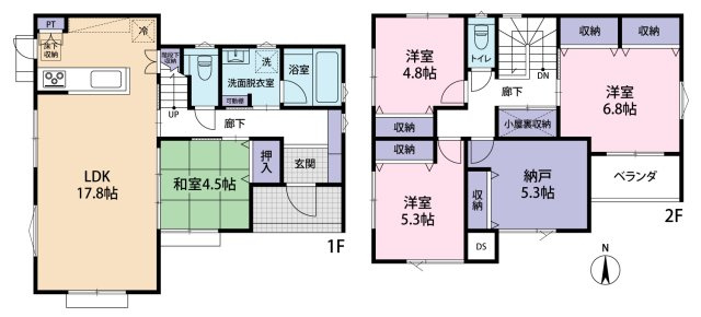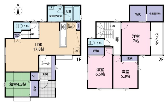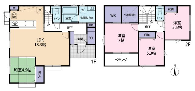 南向きで日当たり良好!WIC+SIC+小屋裏物入など収納豊富な4LDKオール電化住宅です。