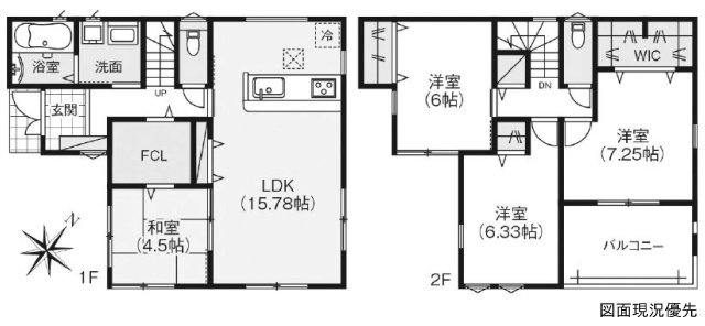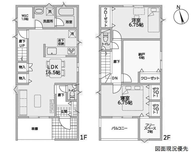 住宅性能評価取得、耐震等級3の高品質住宅。 制振装置SAFE365を採用し、地震対策も安心です。 南向きの明るい立地で、前面道路6mのため駐車がしやすく、2台駐車可能です。 間取りは 2LDK+S(実質3LDKとして利用可能)。 洗面横には便利なWICやフリースペースを備え、収納力の高い住まいです。