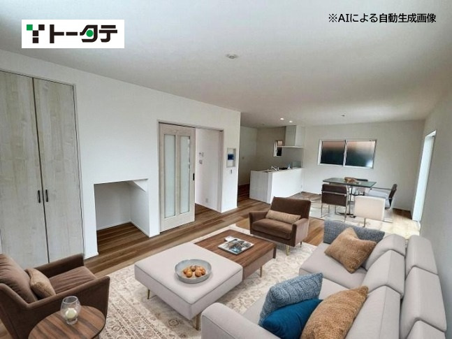 3LDK+S。住宅性能評価取得、耐震等級3で安心の住まい。 LDKは広々16.75帖、小屋裏収納有。 未完成ですが、モデルハウスにてご見学可能です。