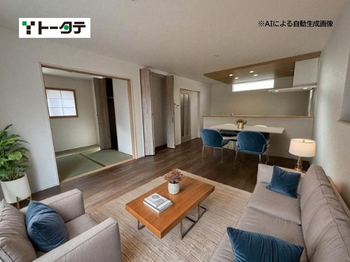4LDK。住宅性能評価取得、耐震等級3で安心の住まい。 1階はLDKは広々16帖に4.5帖のタタミコーナー付き。 未完成ですが、モデルハウスにてご見学可能です。